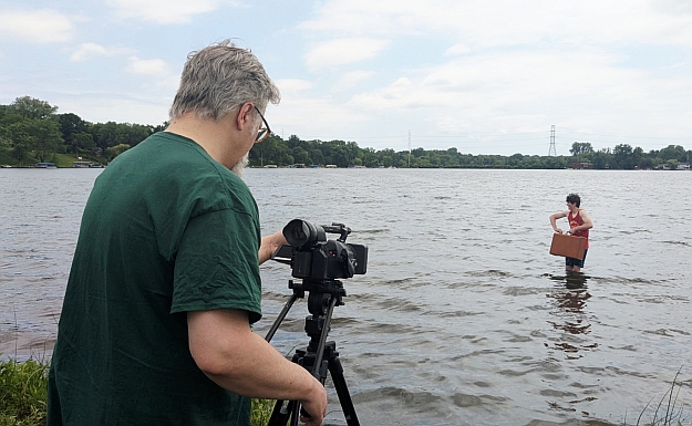 Alongside writer/director Christopher R. Mihm (naturally), Mihmiverse regulars David Mihm (Butch) and the Queen of Snakes herself, Stephanie Mihm, (who snapped the photo above) we're on hand (pun intended) to help grab the final shots needed!