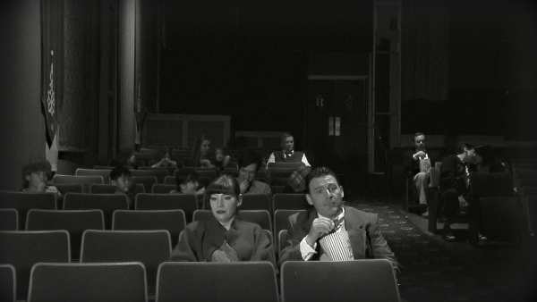 The first still comes from "Queen of Snakes" and was filmed at the Heights Theater, where every Mihmiverse premiere has taken place since "The Monster of Phantom Lake!" In this image, actors Rachel Grubb (Amy/Hagra/Leisl) and Daniel R. Sjerven (Howard Johnson/Cpt. Frehley) appear to be awkwardly waiting for the start of a movie. However, upon closer inspection, the more interesting thing seems to be the number of Mihmiverse references happening in the background! Can you spot them all?