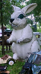 On your way out of town or before seeing a flick, stop by M. Schettl Sales, Inc. where you can walk among weird statues and odd art, mostly made of fiberglass and metal. When I visited, I saw a giant, somewhat disturbing rabbit sculpture. A light drizzle hung in the air and the effect definitely heightened the "creepy" factor of the piece.