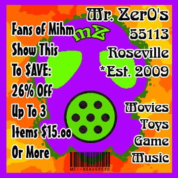 RIGHT NOW in the Mihmiverse. In addition, Mr. Mihm will discuss the monster movie-making process, touch briefly on the future of the 'verse, pontificate on random subjects, and be joined by guests from within and without the Mihmiverse.