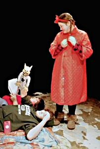 The exclusive, behind-the-scenes photo seen here was taken during filming and shows Alice and her puppet co-star (who is being puppeteered and voiced by the guy behind Danny Johnson, Alice's real-life brother, Elliott Mihm) in action!