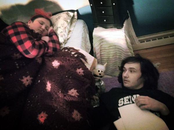 Writer/director Christopher R. Mihm has provided the following behind-the-scenes photo and in it, we see young Evelyn Johnson (Alice Mihm) nestled all snug in her bed, while visions of sugar plums (presumably) dance in her head. Steve's nephew Stu (puppeteered and voiced by "quarantine hair" Elliott Mihm) gets ready to wake up and enlist the unsuspecting heroine in his quest to find his missing uncle!