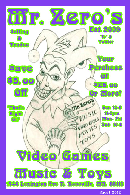 Mr. Zero's specializes in pop culture memorabilia from DVDs, VHS, and Laserdiscs to vintage and new video games, vinyl, CDs, cassettes, 8-tracks, retro and new toys, shirts, action figures, non-sports cards, and almost everything in between!