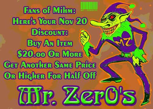 I talk up the Mihmiverse every chance I get. I have done two cosplays for the Mihmiverse: middle-aged-gone-to-hell-Danny-Johnson and Professor Jackson. I own a decent number of Mihmiverse-related collectibles and memorabilia that shall remain unquantified. I'm also North America's top "Christopher R. Mihm tribute artist."