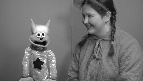 Why are Stu (puppeteered and voiced by Elliott Mihm) and Evelyn Johnson (Alice Mihm) smiling in this "accidental still" from the production of "