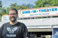 Christopher Mihm, the monster movie maker of Arden Hills, stands outside the Blue Moon Dine-In Theater at the state fair, where his films will be shown throughout this year's Great Minnesota Get-Together. Photo By Kate Garlock/Bulletin