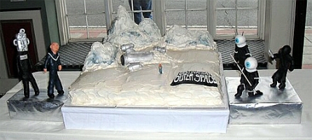 Edible versions of A.D.A.M., Captain Jackson, the Oculons, and an Ominai face off over the cake depicting a pivotal moment from the new film |