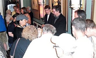 After more than a year in production, thousands of man-hours, steps forward (and back), scheduling nightmares, babies being born, backs thrown out, sets and props repeatedly malfunctioning, and one frostbitten actor/producer, "Destination: Outer Space" FINALLY arrived on the 33rd anniversary of the release of the original "Star Wars." And was the premiere ever SWEET! Outside the Heights Theatre, fans and newcomers lined up early be the first to catch a glimpse of the latest (and may we say greatest) Mihmiverse film!