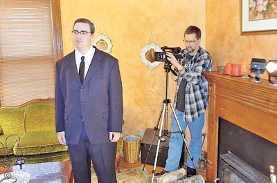 "House of Ghosts" director Christopher Mihm, right, films Lakeville actor Andy Wilkins during a shoot Nov. 19 in Minneapolis. (Photo submitted)